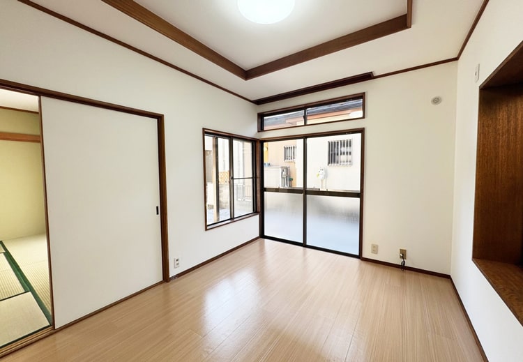 1階の6帖の洋室は、キッチンと引き戸でつながる使いやすい間取りになっています。