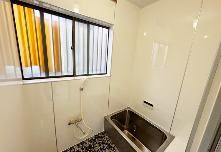 窓付きのバスルームは自然光がほどよく入り、湿気がこもりにくい心地よい空間です。毎日の入浴がよりリラックスできるひとときになります。
