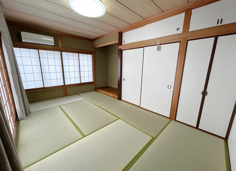 1階の和室は、押し入れと物入があり、十分な収納スペースが確保されています。