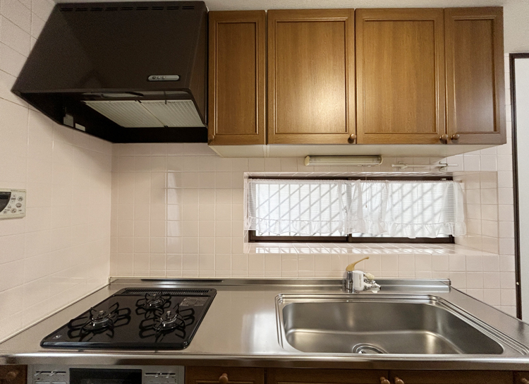 窓付きで明るく、こまめな換気ができる清潔なキッチンです。